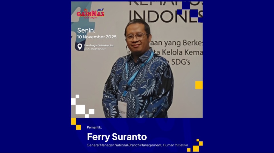 Y2F.Media — Gelaran Gathering Nasional (Gathnas) Turun Tangan 2025 pekan kedua menjadi ajang berbagi rahasia sukses gerakan kemanusiaan. Bang Ferry Suranto, General Manager National Branch Management dari Human Initiative, berbagi wawasan kritis mengenai cara membangun keterlibatan publik (Public Engagement) yang kuat dan mengelola sistem relawan (Volunteer Management) secara efektif.