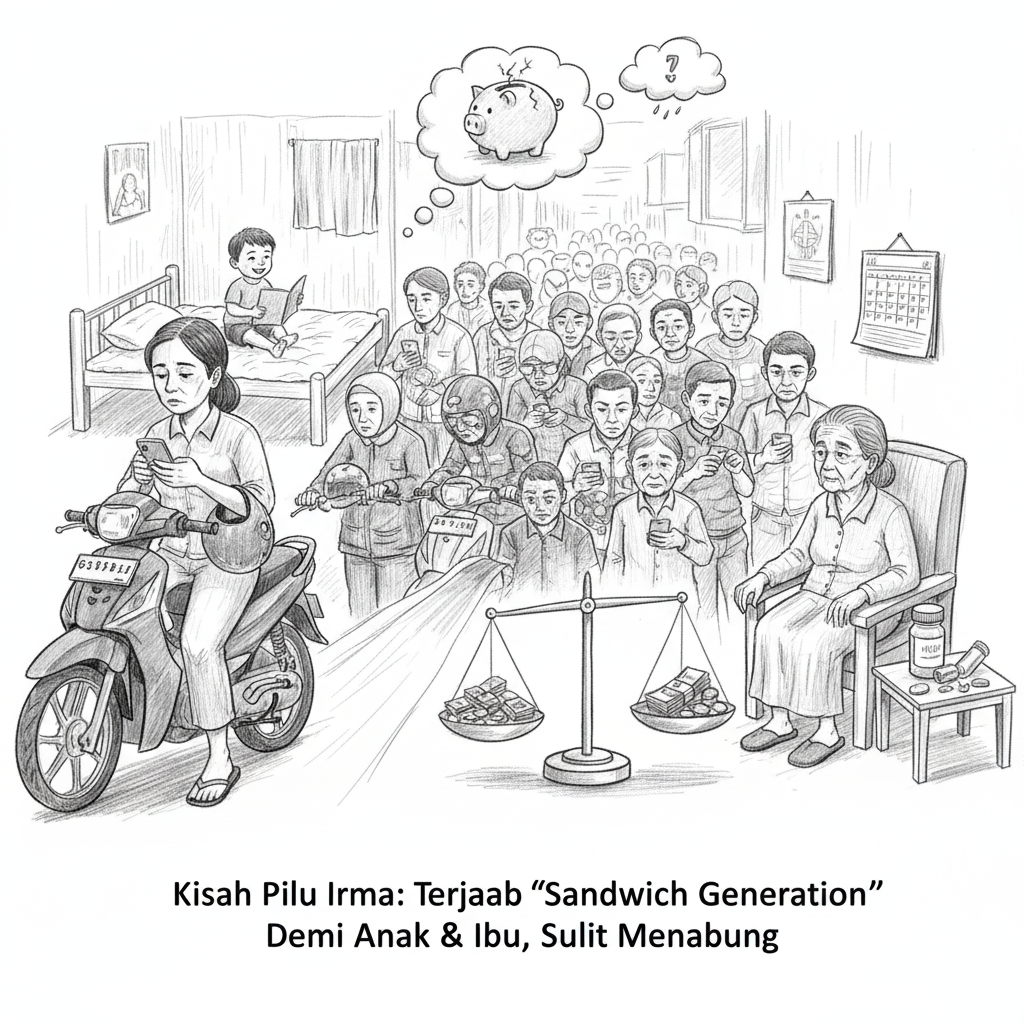 Sebagai sandwich generation, Irma juga memprioritaskan kebutuhan orang tuanya, memberikan uang sekitar Rp30.000 hingga Rp50.000 per hari untuk membantu perekonomian sang ibu.